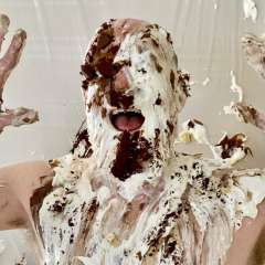 Pies with Company had a giant chocolate cake smooshed in his face by SeymourTheClown